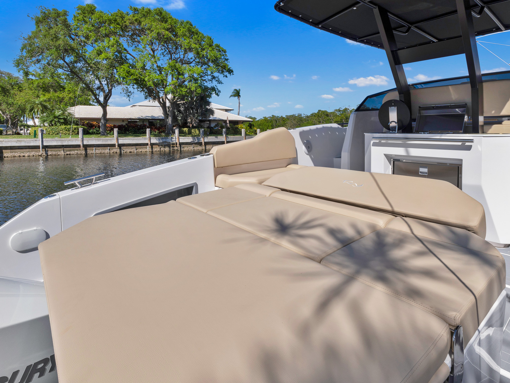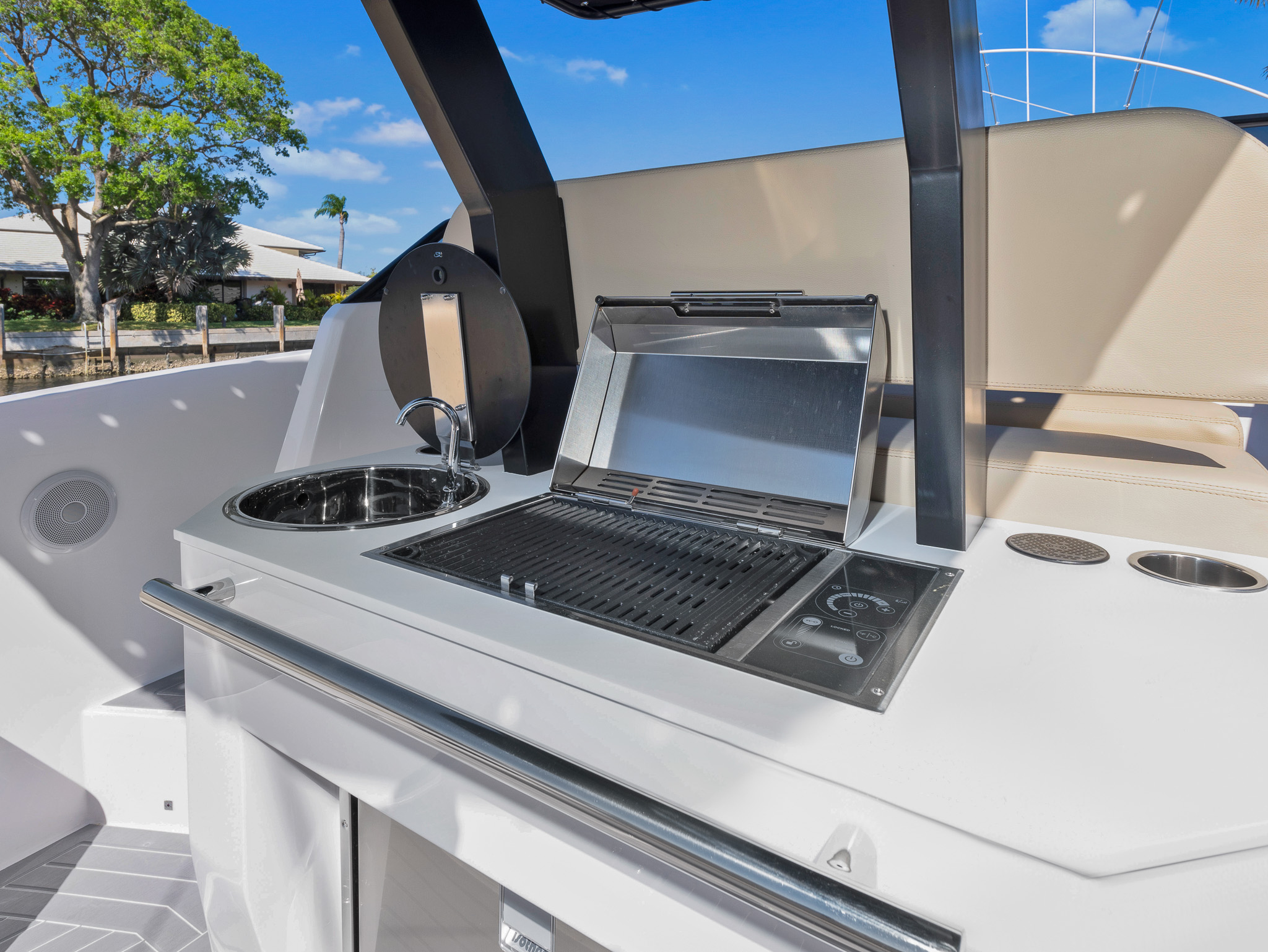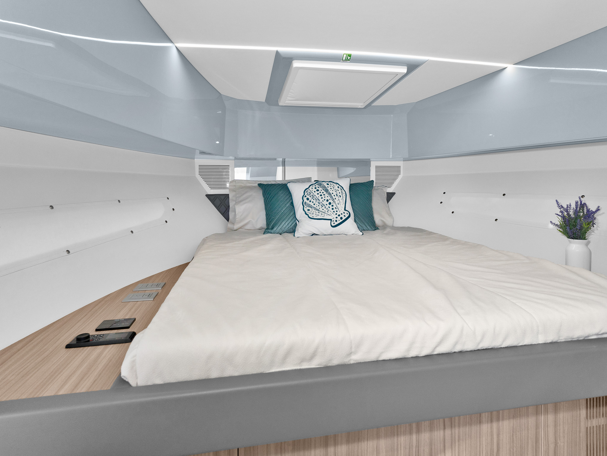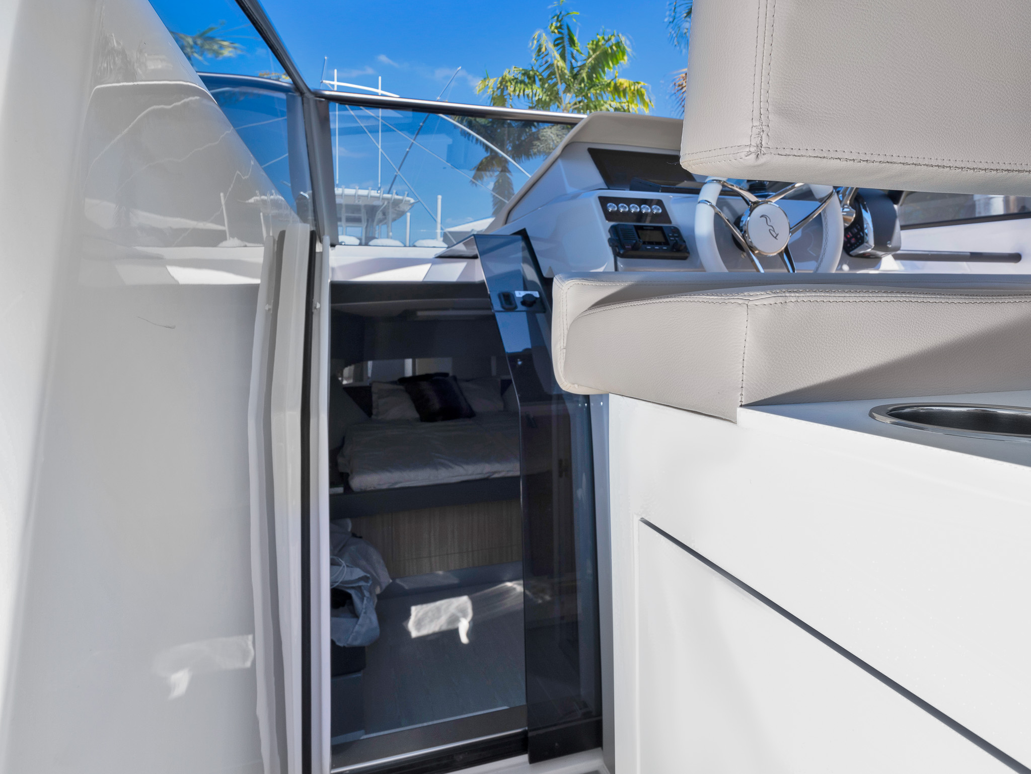 RIO YACHTS attention to details, high-end finishes and top materials make this a sought after luxury yacht! This luxurious yacht has 2 queen beds to sleep up to 4 people, a spacious head, electric lifting table out of the cockpit floor, an electric grill and multiple cell phone charging pads to keep you connected.