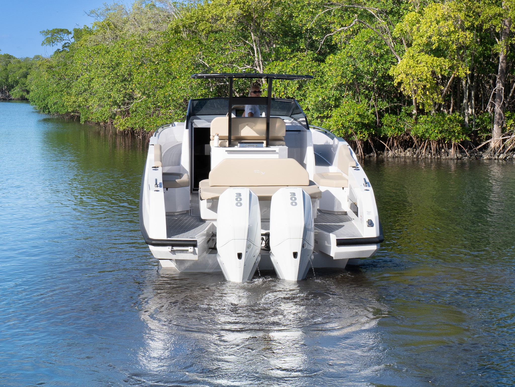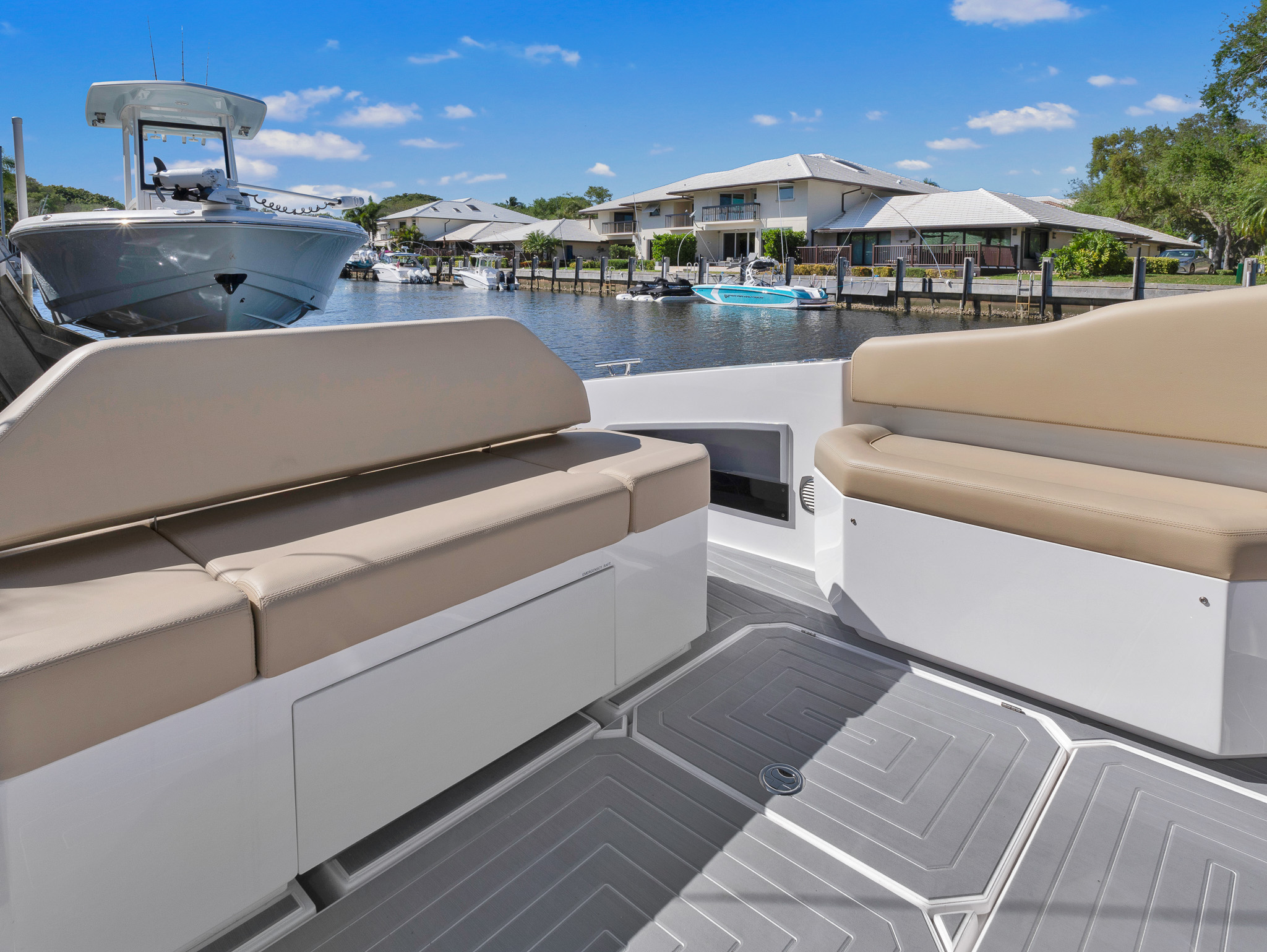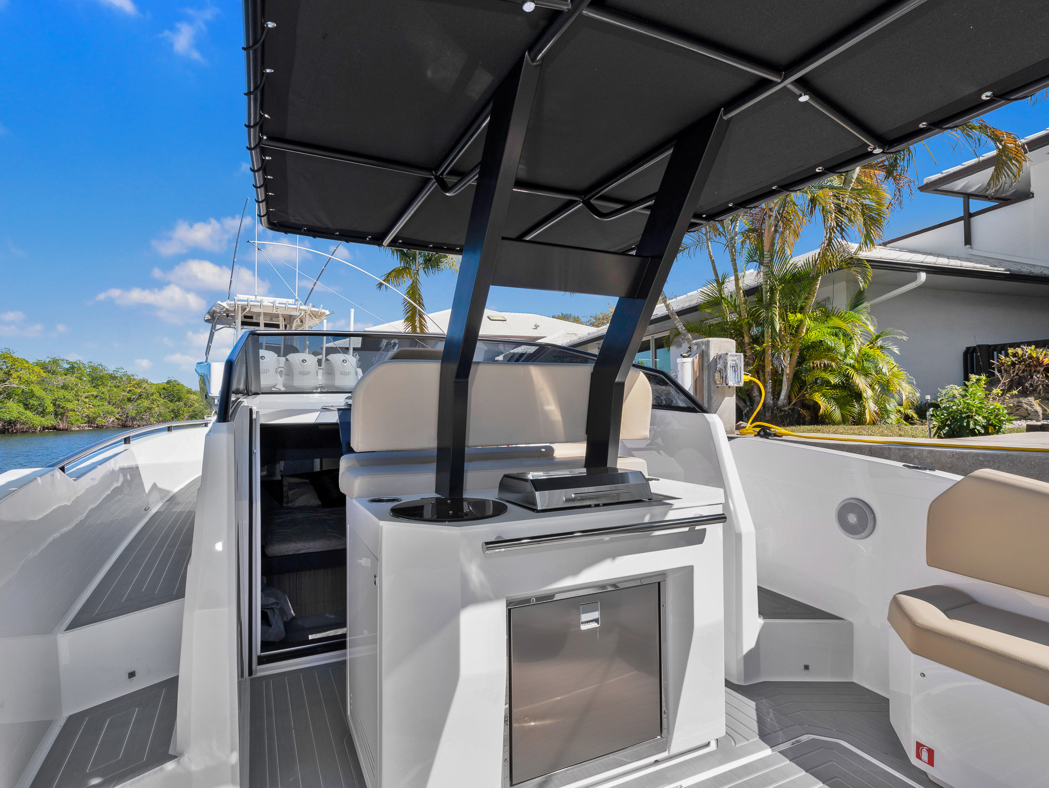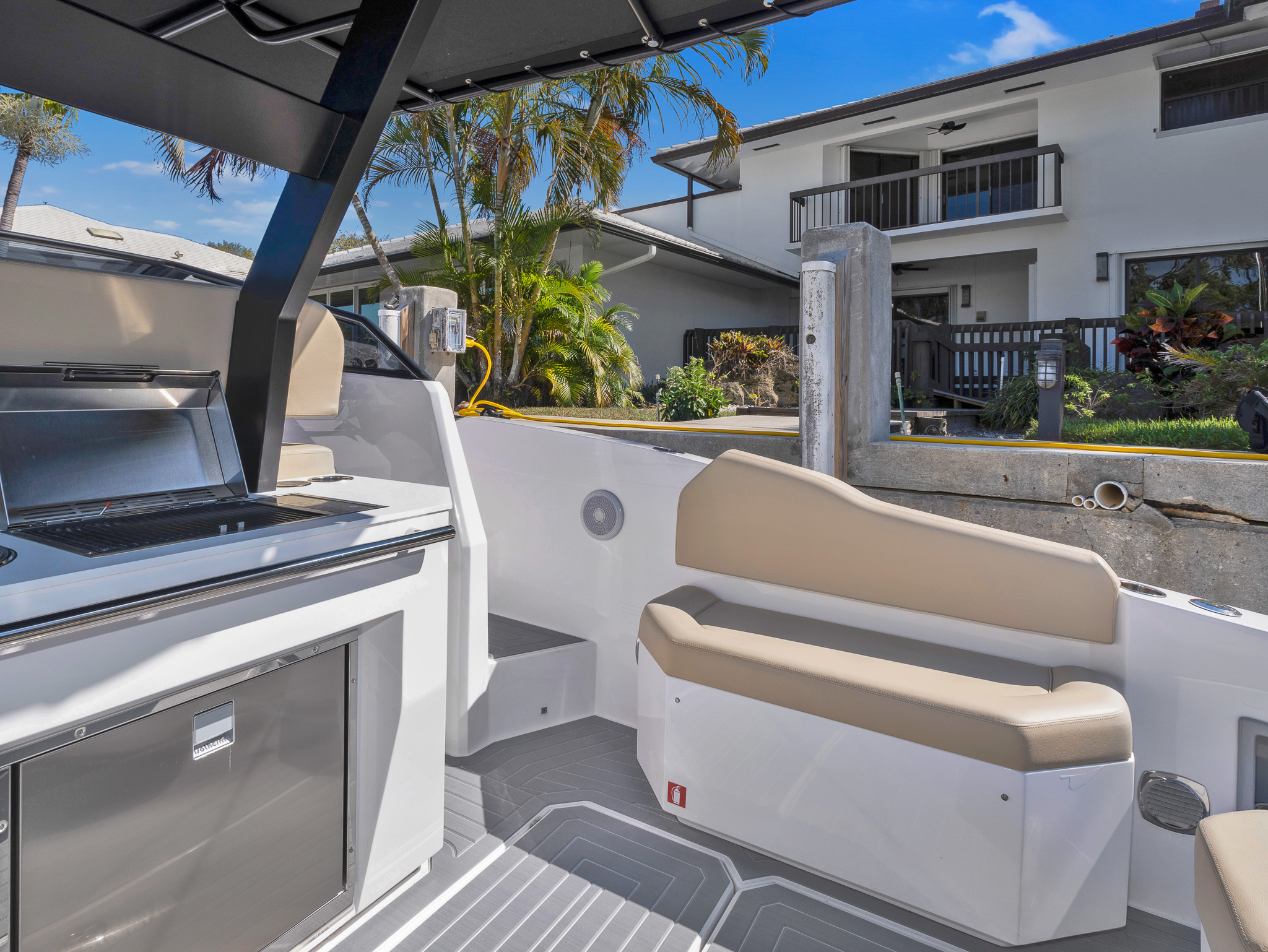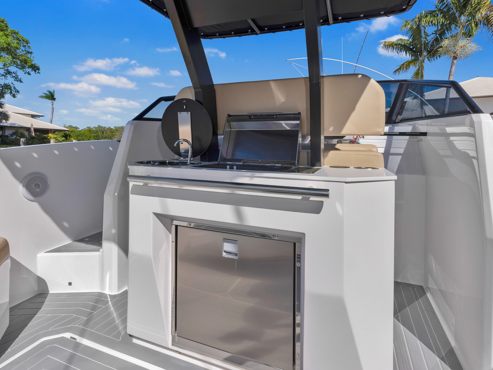 RIO YACHTS attention to details, high-end finishes and top materials make this a sought after luxury yacht! This luxurious yacht has 2 queen beds to sleep up to 4 people, a spacious head, electric lifting table out of the cockpit floor, an electric grill and multiple cell phone charging pads to keep you connected.